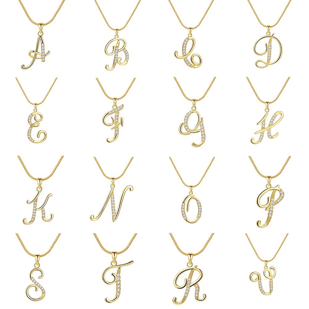 Europe and the United States cross-border 26 letters copper set zircon round snake bone chain necklace letters gold pendant clavicle chain jewelry