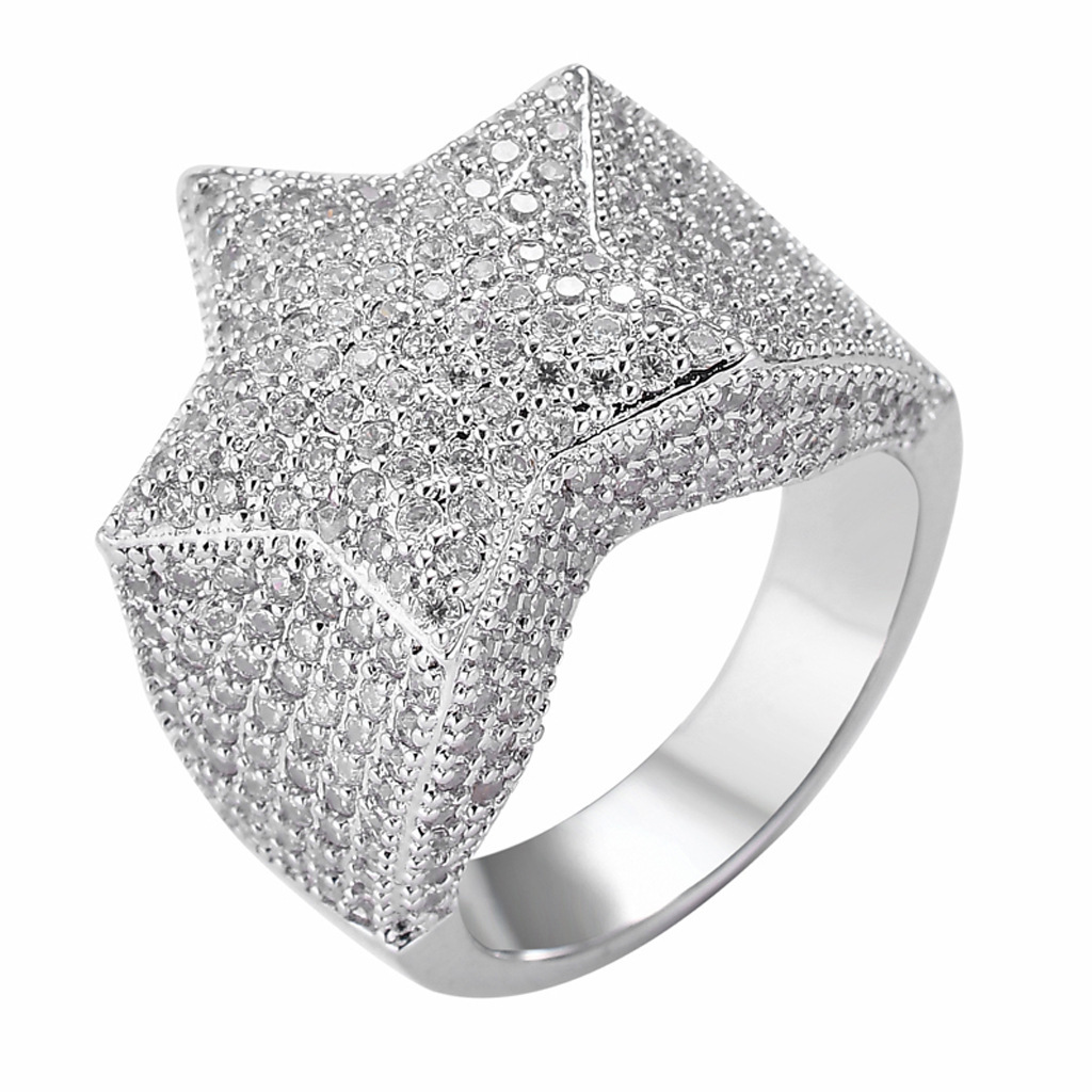 Europe and the United States explosive five-pointed star ring 18K gold-plated micro-inlaid zircon hip hop rap men's ring StarRing