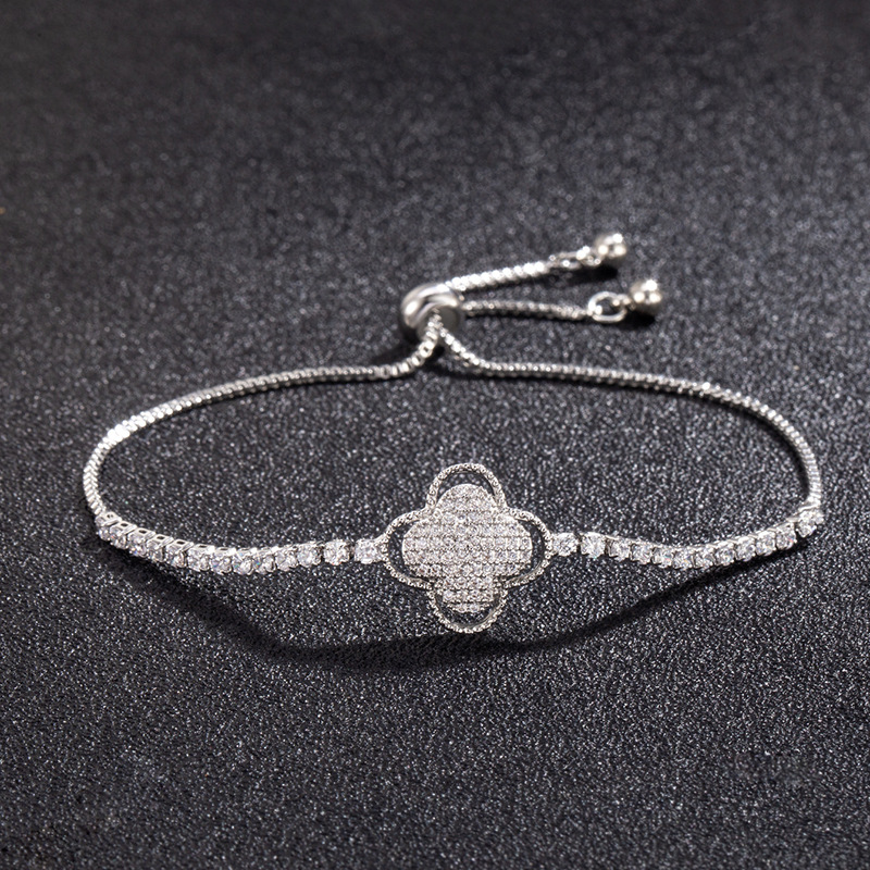 Rap Rapper Singer Jewelry Four-Leaf Clover Bracelet Moissanite Full Inlaid Electroplated K Gold