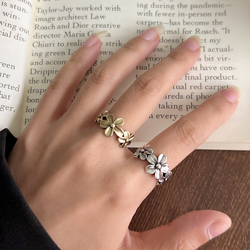 Lan Zhi vintage Bronze Open Flower Ring Vintage Ins Internet Celebrity Personality Jewelry 925 Silver Ring Niche