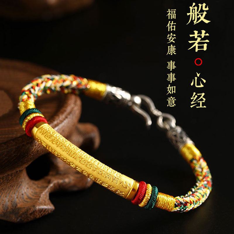 Heart Sutra Bracelet, Trendy Retro Ethnic Style Jewelry, Birth Year Bracelet, Gift for Men and Women, Couple Style, National Trend Style