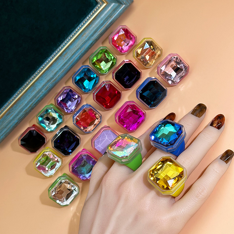 Amazon's Best-Selling New Square Octagonal Diamond Resin Ring for Women Korean Style Ins Style Ring Wholesale