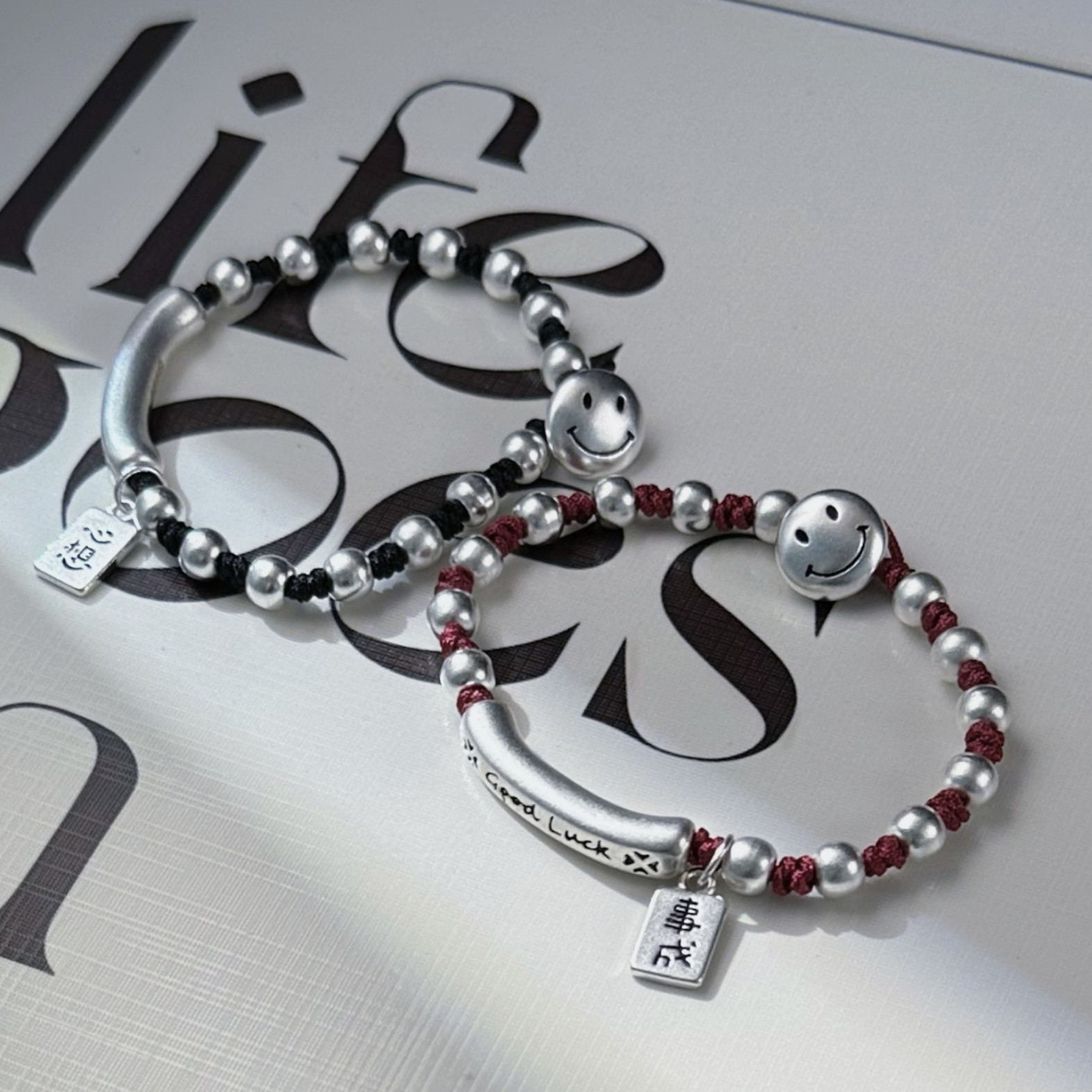 All Wishes Come True, Good Luck, Smiling Face, Traditional Frosted Bracelet, Red String for the Year of Birth, Couple Bracelet, Jewelry