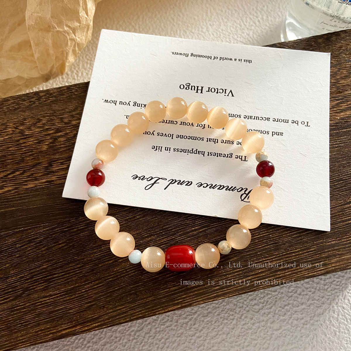 Broken Silver Tiger Eye Stone Spliced Beaded Bracelet Women's Autumn and Winter Niche Retro Hand Jewelry Student Couple Personalized Bracelet