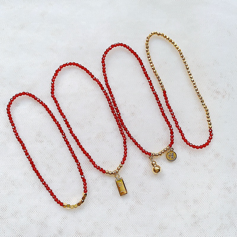 [Full Body Titanium Steel, No Need to Take It Off after Bathing] 2025 New Style Chinese Style Red Spinel Bouncy Beads Blessing Gourd Elastic Bracelet