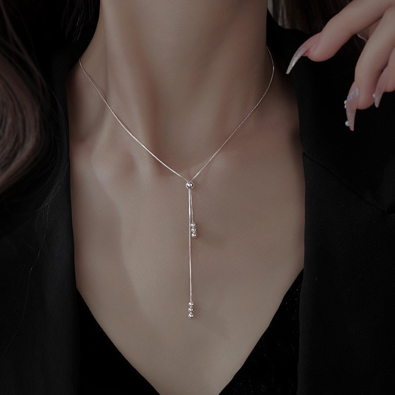 Round bead tassel necklace women's autumn and winter adjustable light luxury niche sweater chain high-end long elegant clavicle chain