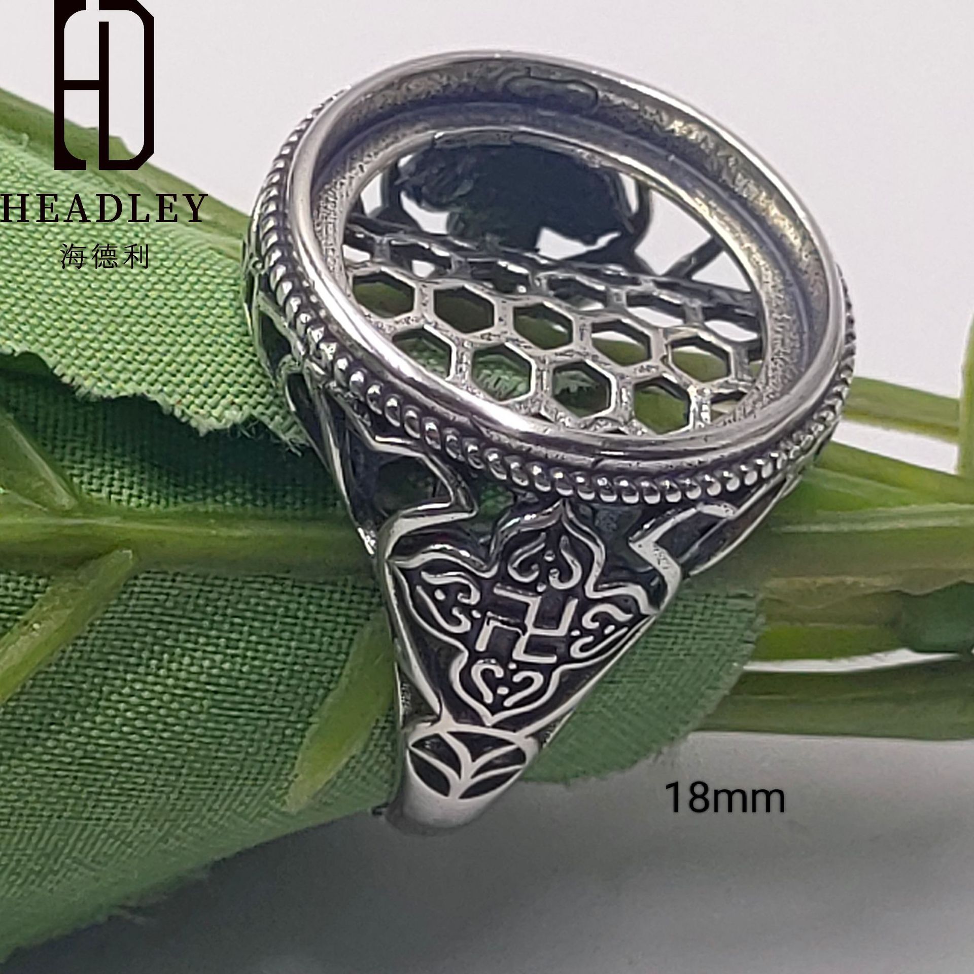 Hydeli Thousand-Character Totem Vintage White Copper Ring Setting Wholesale Plain Ring Unisex Chinese Style Ring