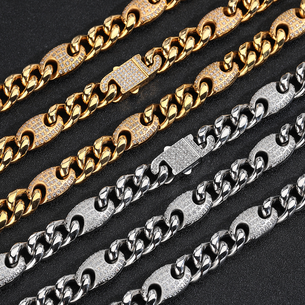 Cross-border Hip-hop Rap Necklace Coffee Bean Full Diamond Cuban Chain Necklace European and American Fashion Men's Full Diamond Jewelry suit