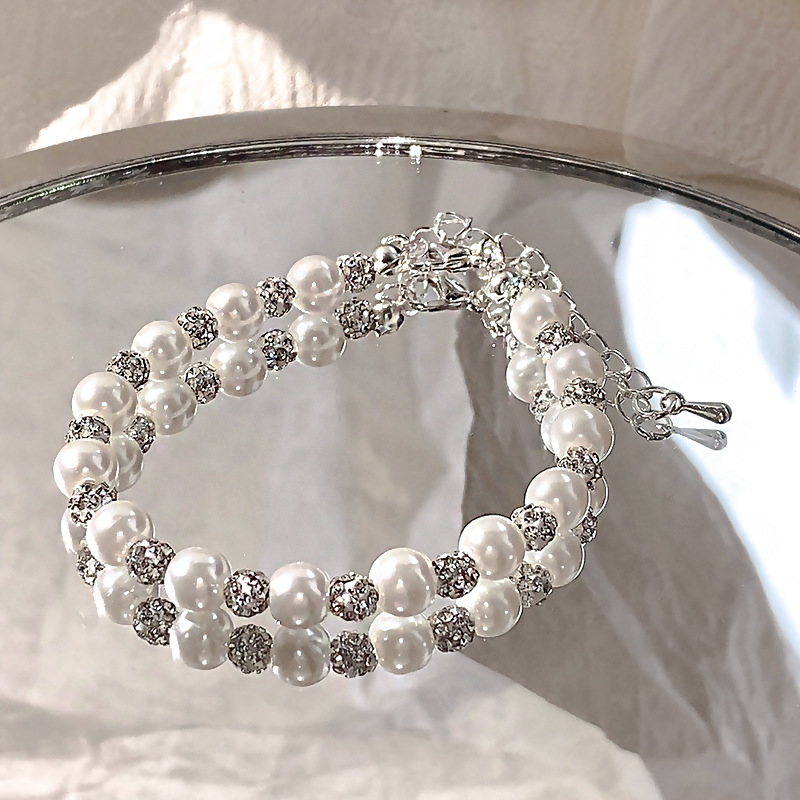 Gimsophila Imitation Pearl Silver Beaded Bracelet Women's Light Luxury High-end Sense Personalized Fresh Style Student's Best Friend Bracelet