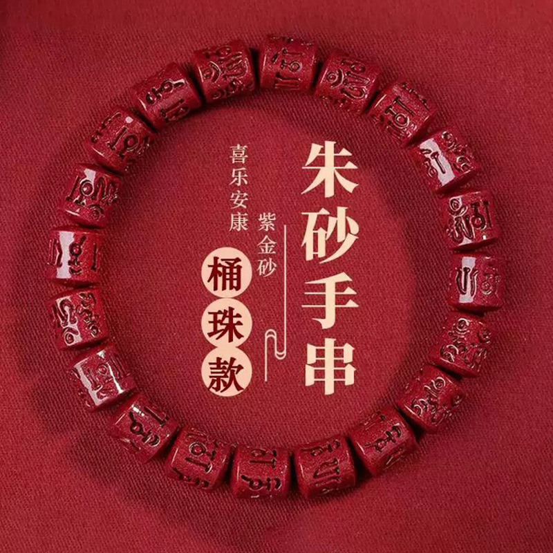 Cinnabar Bracelet Six-Character Mantra Bucket Bead Bracelet Low Content Purple Gold Sand Beaded Year of the Snake Gift Bracelet