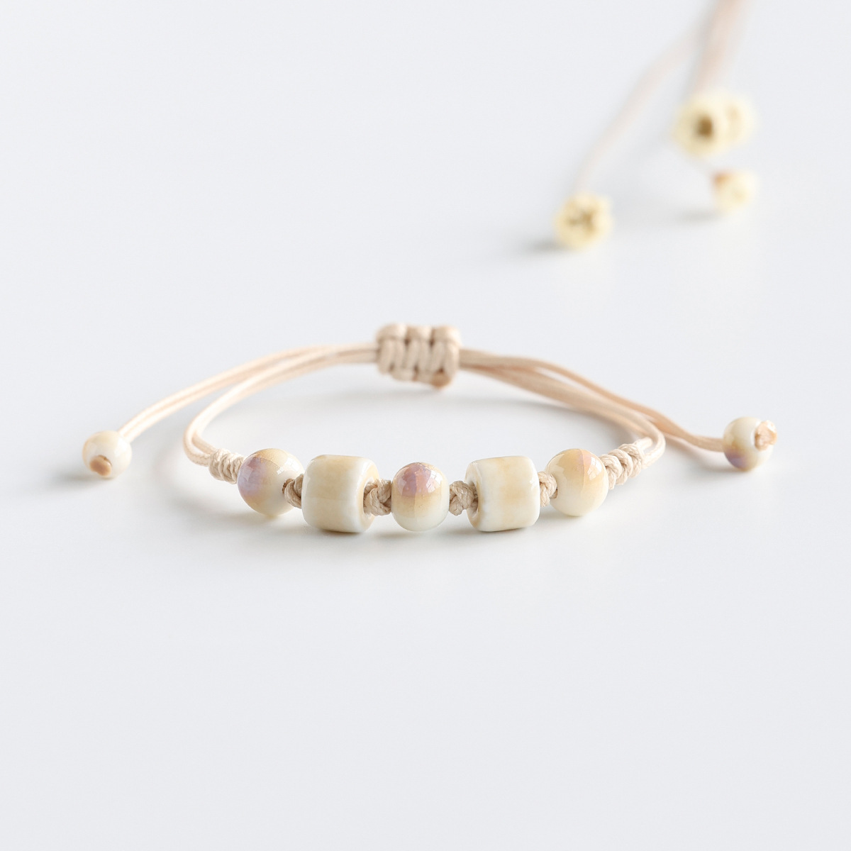 New Chinese Artistic Retro Ceramic Bracelet Jingdezhen Porcelain Bead Woven Couple Bracelet Female Guofeng Student Jewelry Male