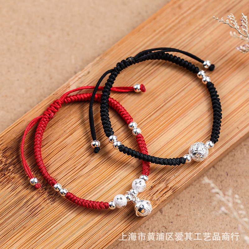 Aiqi S990 silver transfer bead Bell concentric couples red rope bracelet diy woven rope jewelry holiday gift