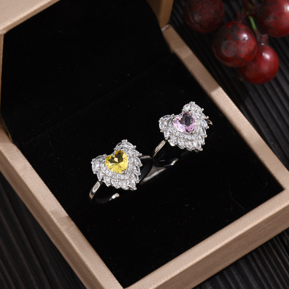 Tiktok live new jewelry design angel wings ring yellow diamond wings heart-shaped fashion ring opening adjustable