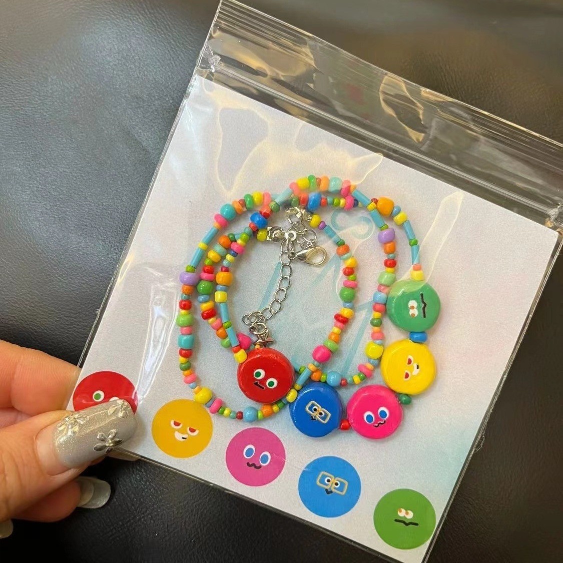Yuyu Korean Retro Smiley Face Colorfulful Beaded Ring Korean Style Resin Smiley Face Ring Ins Popular Ring for Women