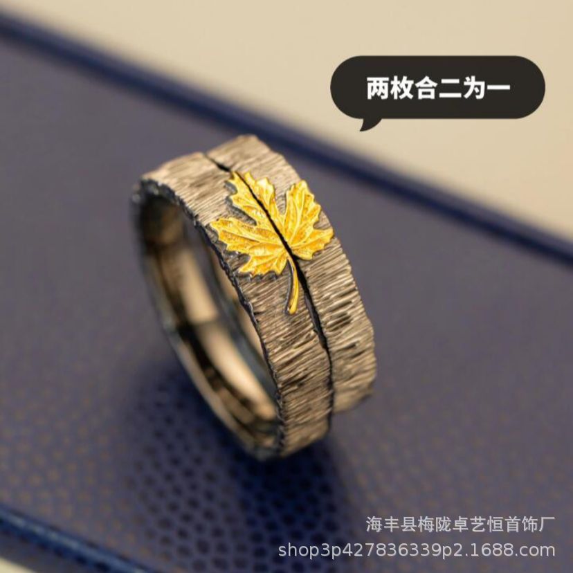 Jay Chou [Maple] Niche Design Black Gold Maple Leaf Couple Rings Simple and Personalized Ins Live Mouth Available for Wholesale