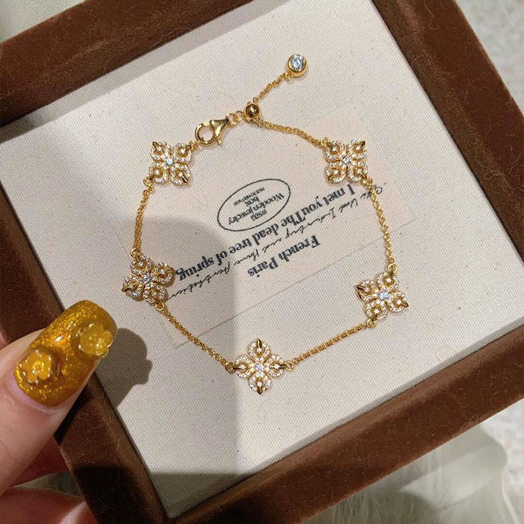 Xiaohongshu's Popular Single-Sided Wearable Full-Diamond Cross Pestle Five-Flower Bracelet Ancient Gold Sparkling Red Diamond Vajra Bracelet
