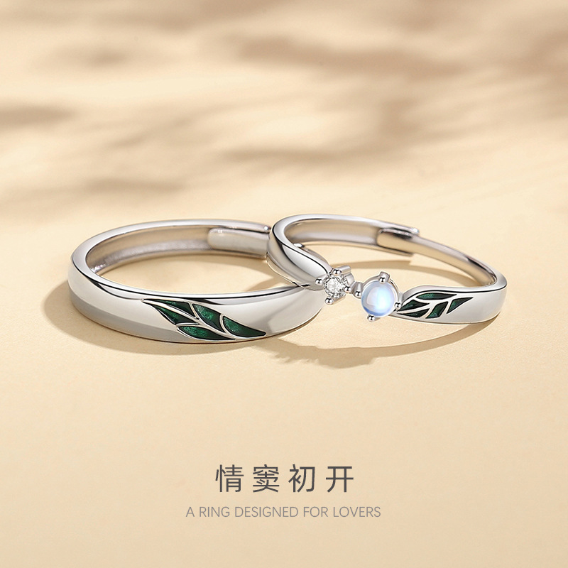 Sinus of Love Sterling Silver 925 Couple Ring Women's and Men's National Fashion Ins Style Tanabata Valentine's Day Dream Moonstone Ring