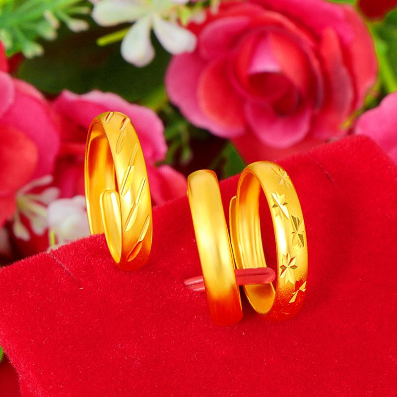 Ancient brass jewelry gold shop 1:1 men and women with the same printing classic gypsophila ring sand surface ring supply