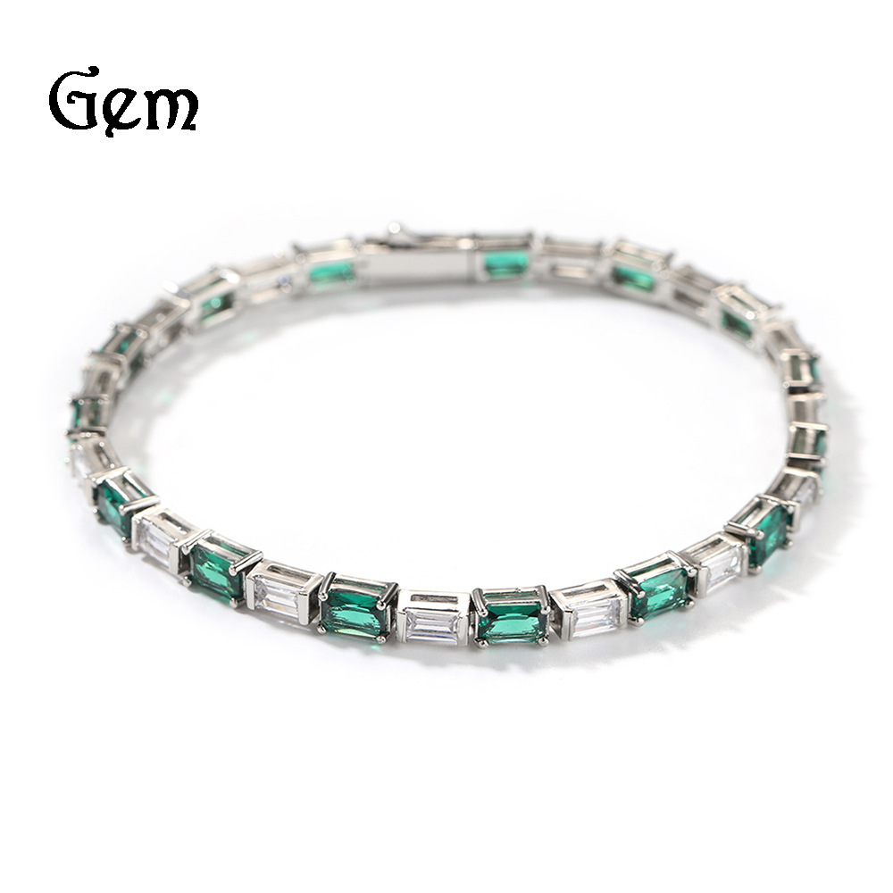 Cross-border hip-hop jewelry copper inlay 5A zircon tennis chain emerald color matching a row of bracelets fashion jewelry wholesale