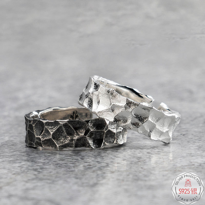 Original Handmade Cross-Border Hot-Selling Hammered Roman Style S925 Silver Ring for Trendy Men, European and American Hip-Hop Retro Vintage Literary Style