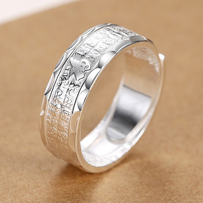 Ring men's sterling silver trendy six-word mantra rotating retro index ring couple female Valentine's Day gift for boyfriend