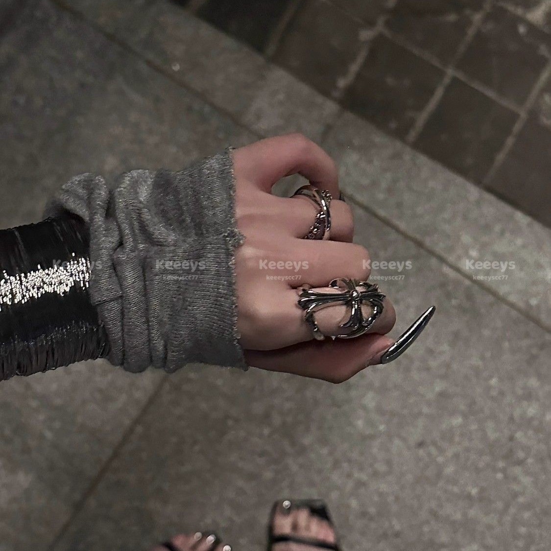 Keeeys | American retro ancient early taste big cross hot girl wide ring hollow old Thai silver