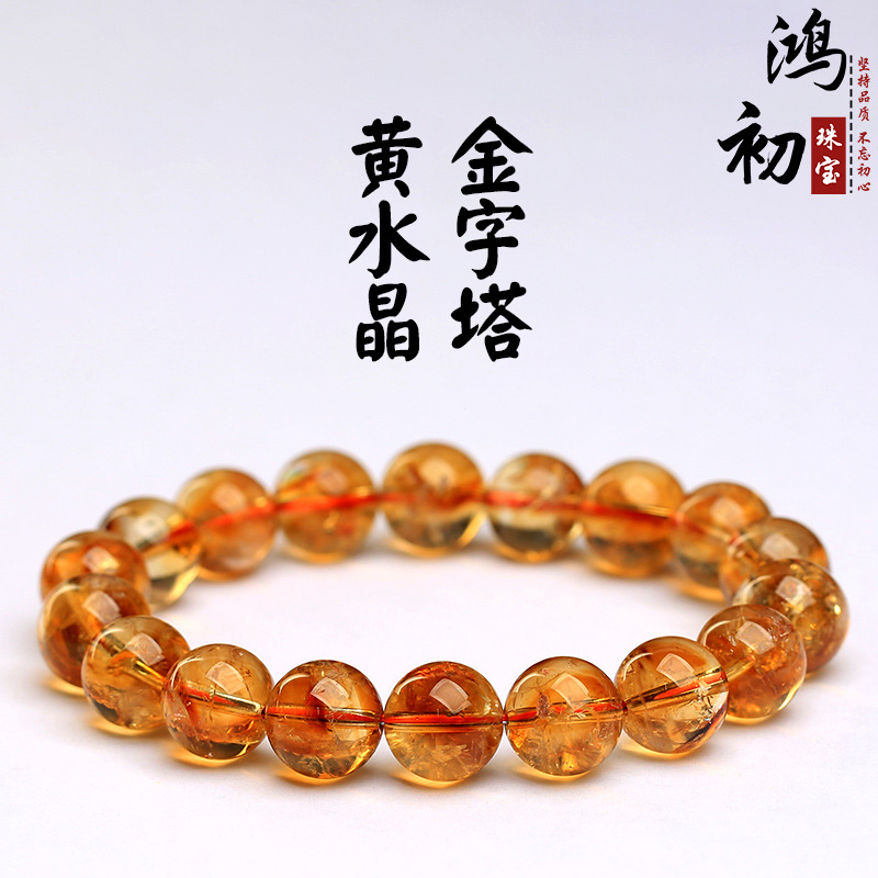 Hongchu Jewelry Natural Yellow Tower Crystal Crystal Bracelet Yellow Crystal Pyramid Round Bead Bracelet Wholesale