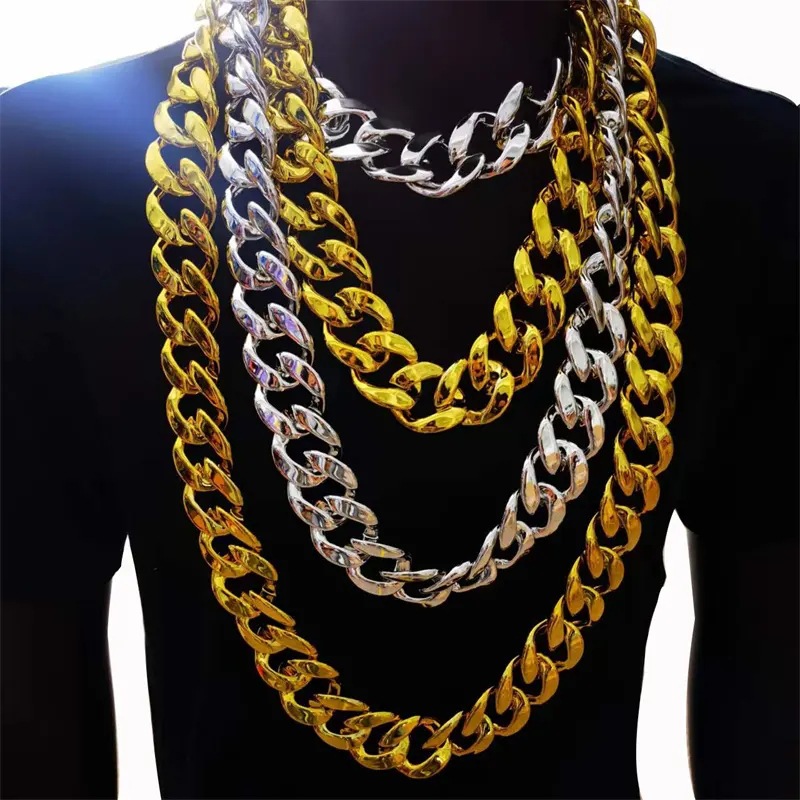 European and American hip hop CCB exaggerated big gold chain plastic simulation gold necklace Personalized Performance Festival performance photo props