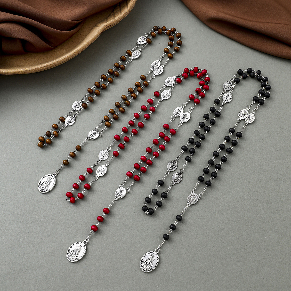 6mm Fragrant Wooden Bead Necklace Amazon Hot Sale Madonna Cross Necklace Handmade Rosary ROSARY Cross Border New