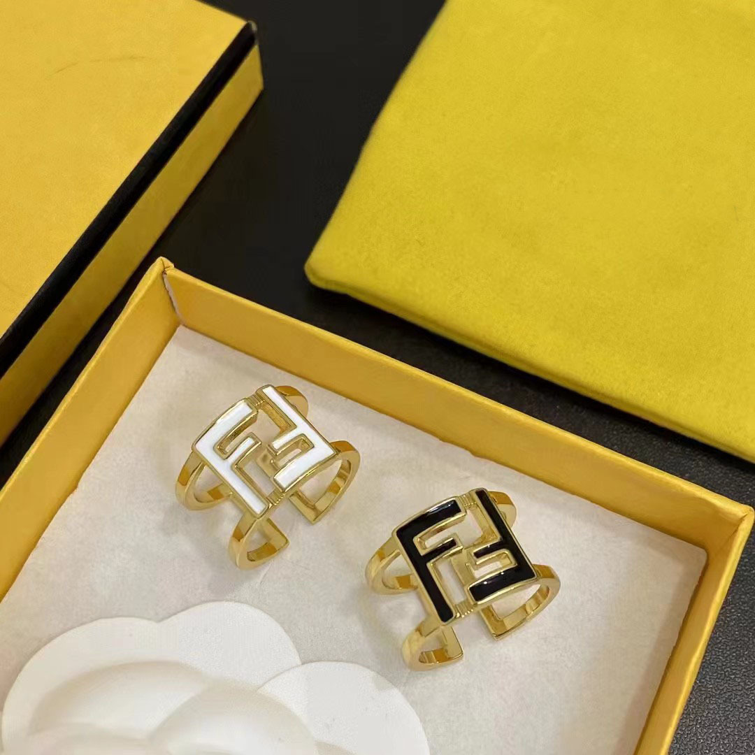 New Classic Double F Letter Black and White Ring Vintage Ins Style Fashion Open Ring F Letter Light Luxury Jewelry Trend