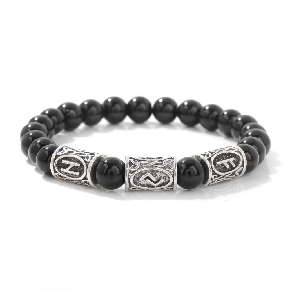 European and American Cross-Border New Product Huwen Symbol Norwegian Bracelet 8mm Stone Beads Retro Ethnic Bracelet Manufacturer Wholesale