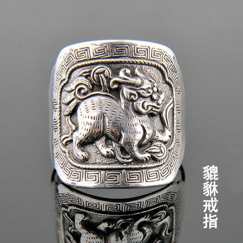 Pixiu Ring Opening Retro Old Enamel Burnt Blue Men's and Women's Ring to Attract Wealth and Transfer Wealth Factory Direct Sale