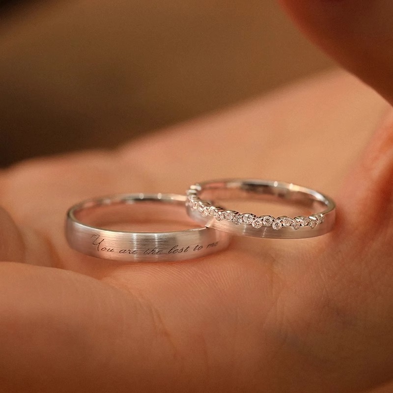 Taisheng 999 Sterling Silver Couple Ring Ring for Men and Women, a Niche Design, a Token Gift for Boyfriend and Girlfriend