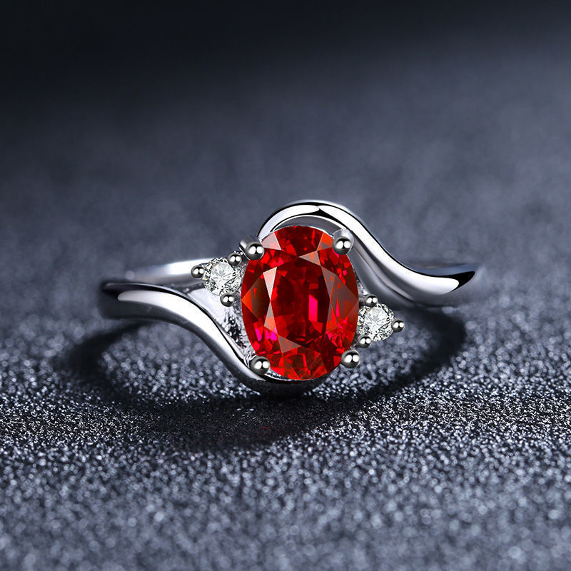 Cross-Border Wish Inlaid Imitation Chrysoprase Pigeon Blood Natural Red Tourmaline Open Ring Diamond Ring Geometry