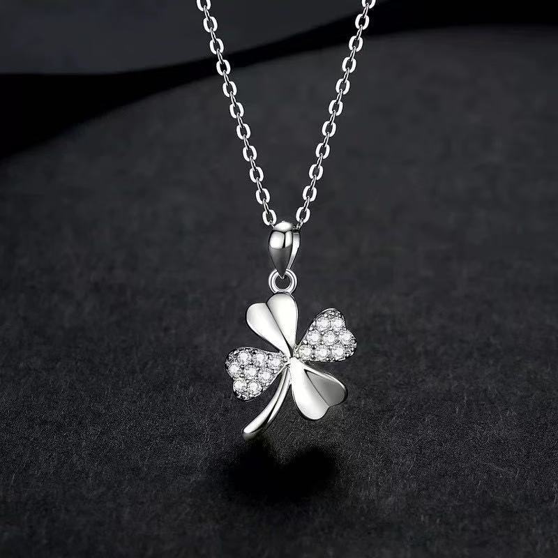 999 Sterling Silver Four-Leaf Clover Necklace for Women Ins Cool Style Clover Clavicle Chain High-End Cool Feeling Popular Accessories