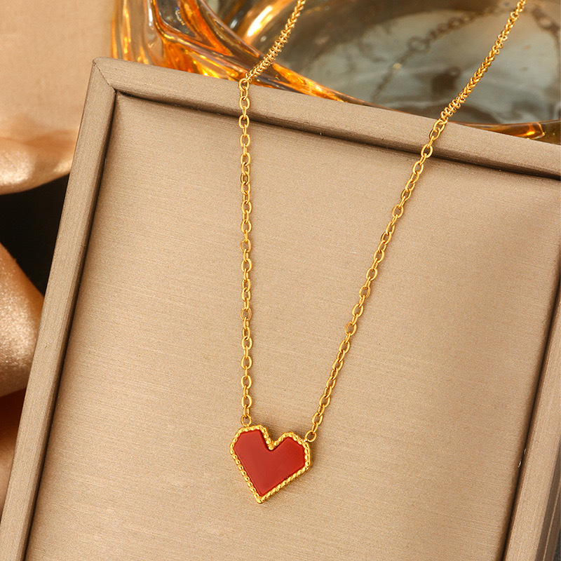 French Red Small Love Mother-Of-Pearl Fashion Necklace for Women, Non-Fading Titanium Steel Clavicle Chain, Light Luxury Jewelry, Drop Shipping