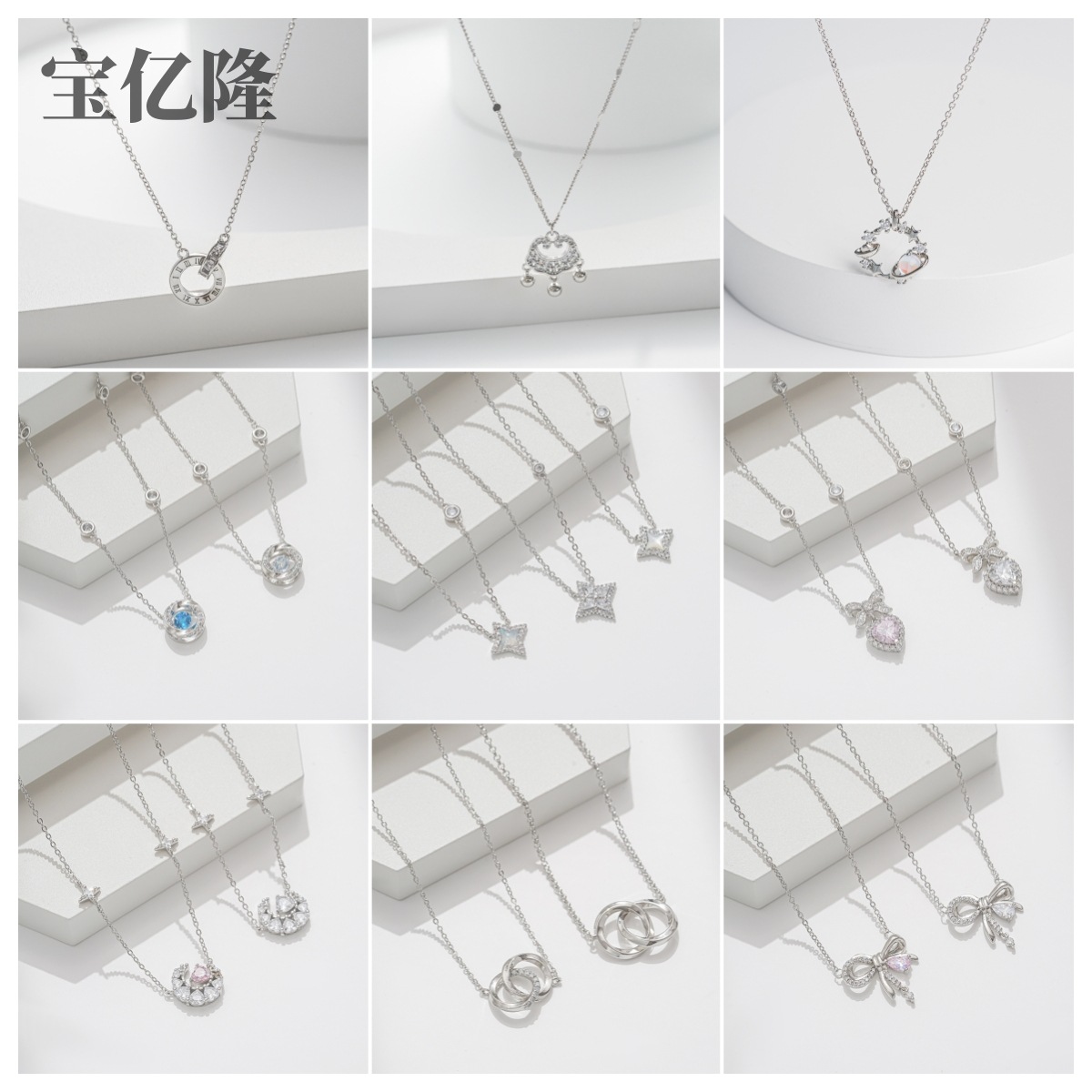 Necklace Women's Internet Celebrant Bow Zircon Flower Niche Simple High-end Necklace New Design Pendant suit