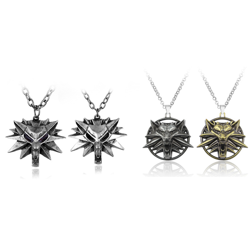 Cross-border source game surrounding Wizard 3 male protagonist White Wolf jelot wolf head logo necklace Magic Hunter neck chain