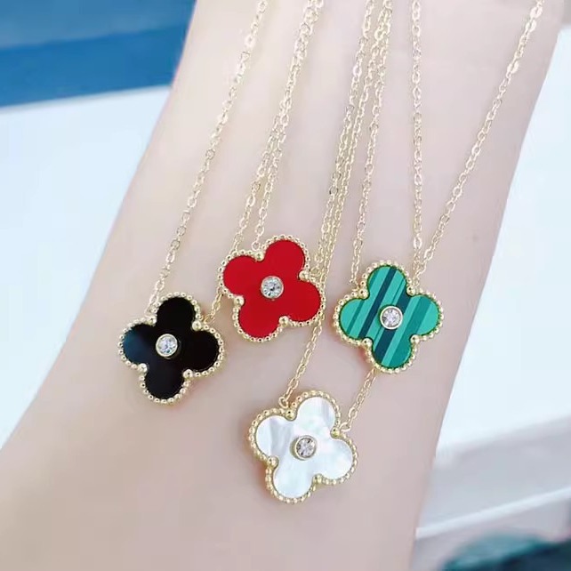 Lucky Four-leaf Clover Necklace Clavicle Chain Women's Diamond-encrusted Titanium Steel Color-free Cross-border Fashion Online Red Tiktok Same Jewelry