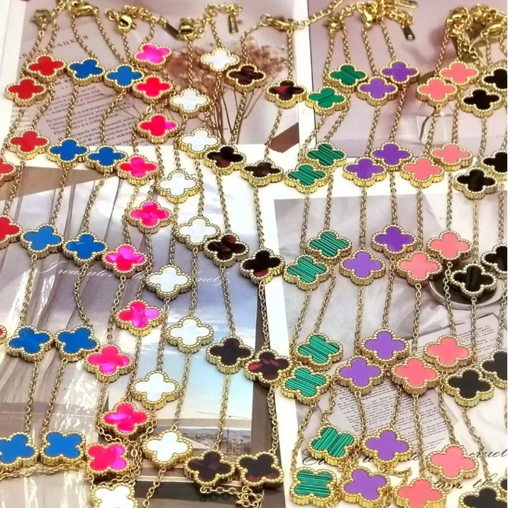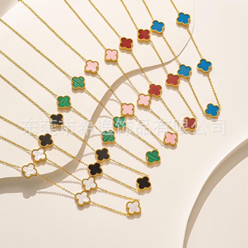 Lucky Four-Leaf Clover Necklace Titanium Steel Non-Fading Popular Trendy Five-Flower Clavicle Chain Jewelry for Women Simple Jewelry Wholesale