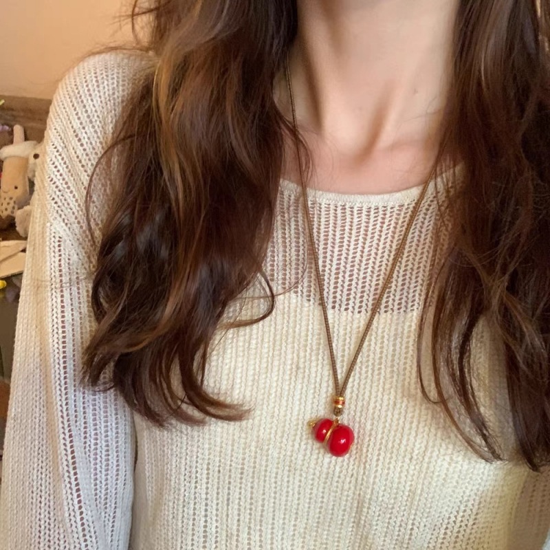 New Chinese-Style Gourd Pendant Necklace, Fashionable, Light Luxury, Niche, Simple Enamel, Casual Knotted Rope Long Sweater Chain