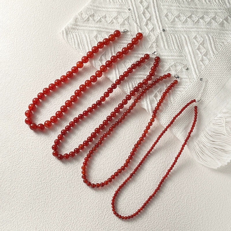 Fashion Ankora Red Imitation Agate Beaded Necklace Women's New Arrival Popular Style Light Luxury High-End Sense Woolen Chain Clavicle Chain