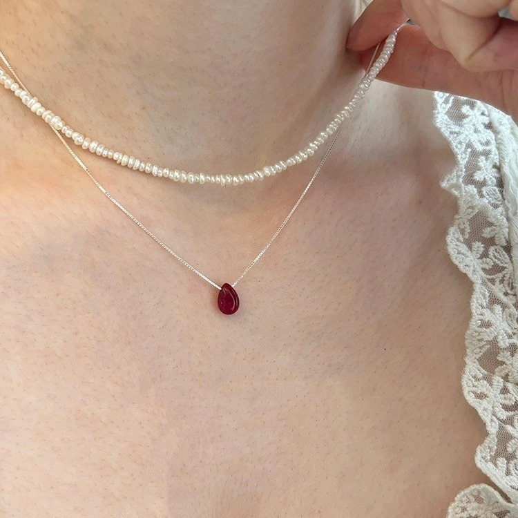 [Pearl of Red Tears] Cinnabar Red Water Drop Pendant Necklace Women's Accessories Women's All-match Light Luxury Niche 2024 New Style