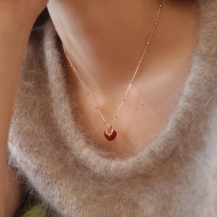 AMO Moulin Rouge Red Love Necklace Women's Temperament High-end Light Luxury Niche Collarbone Chain Woolen Chain Accessories