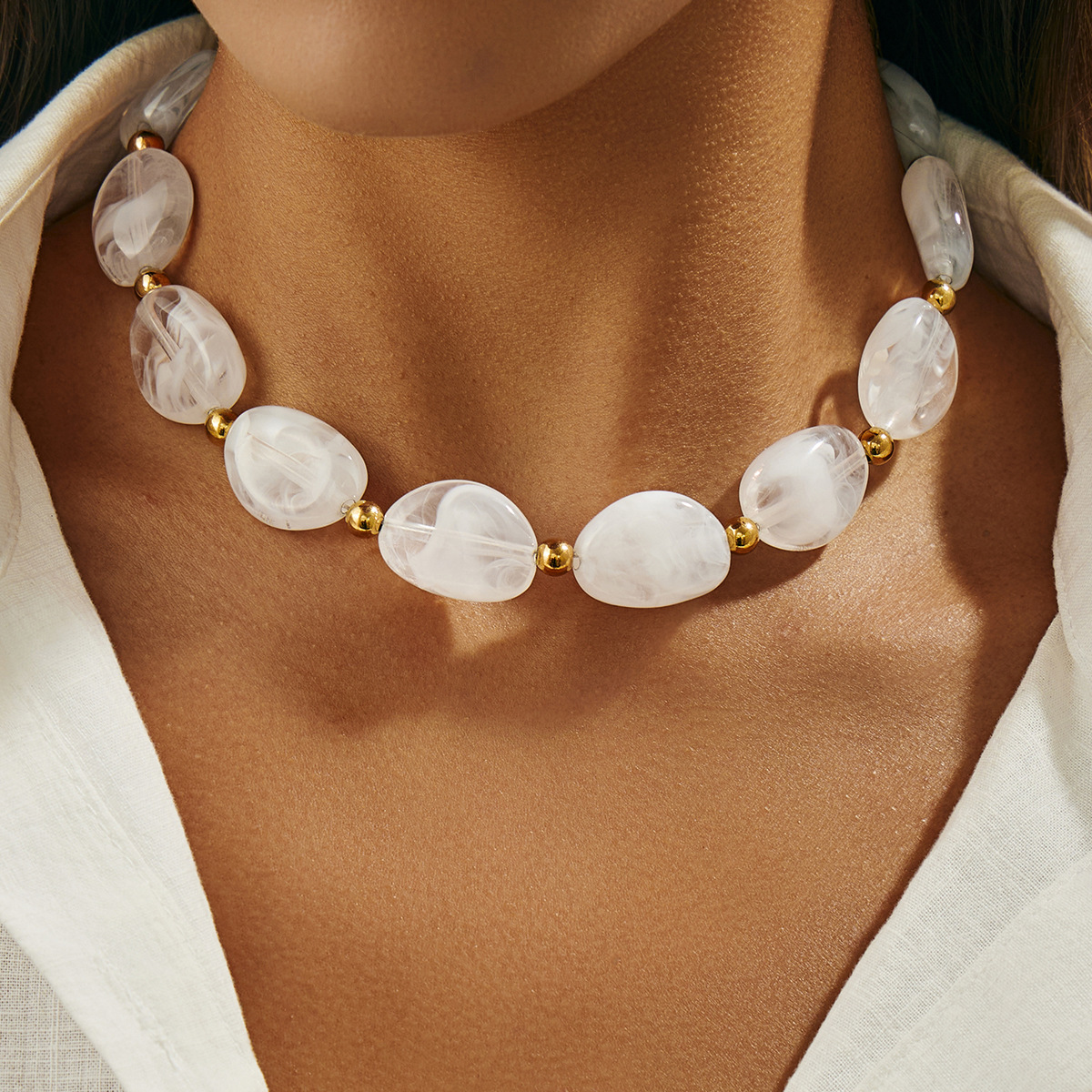 Cross-Border European and American Agate Stone Necklace, Simple Style, High-End, Light Luxury, Matchinging Single Product Necklace, Ready-Made Wholesale Amazon