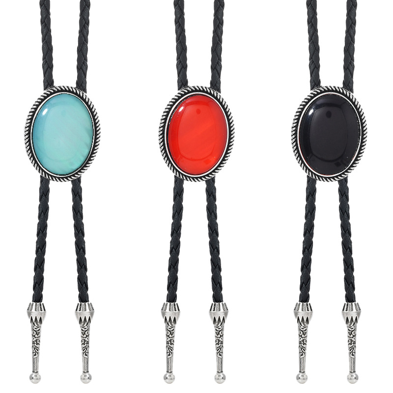 Retro Leather Rope Bow Tie for Men and Women, Obsidian Pendant, Braided Rope Necklace, Ethnic Style Versatile Necklace
