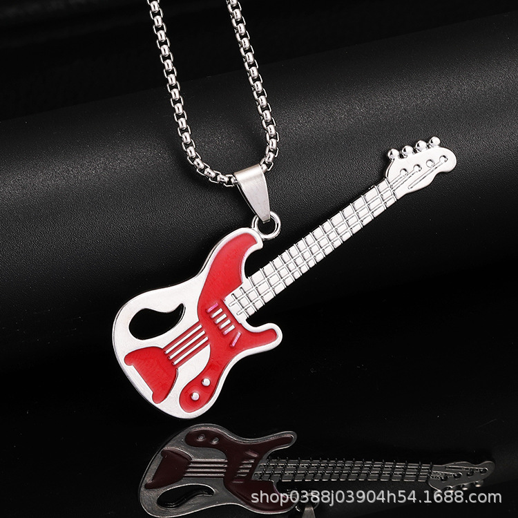 Cross-Border European and American Hip-Hop Music Guitar Pendant Necklace Street Disco Titanium Steel Sweater Chain Pendant Jewelry Trendy Fashion