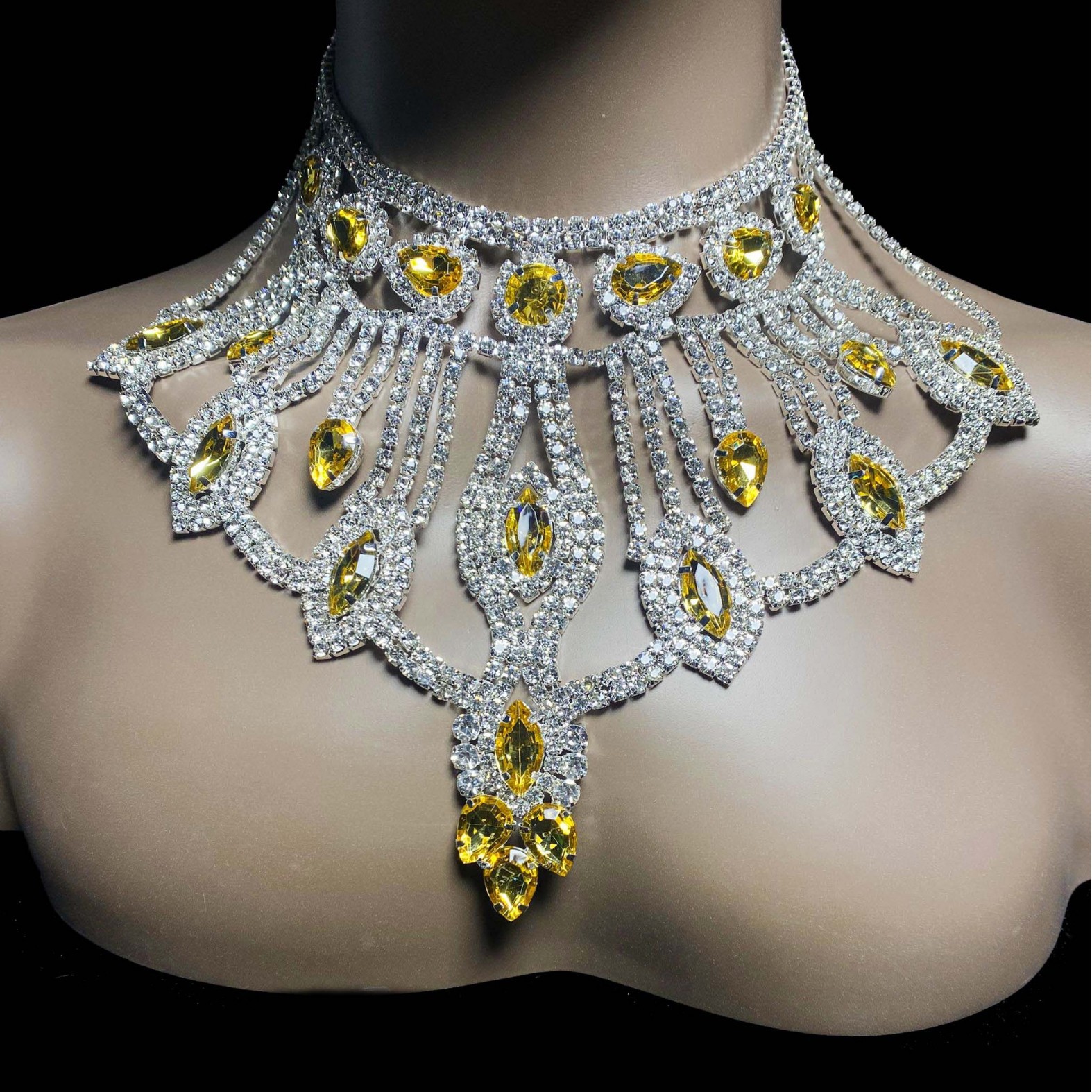 European and American Hot Selling Fashion Women Exquisite Shiny AB Color Big Gems Necklace Luxury Exaggerated Rhinestone Large Necklace