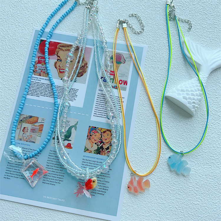 2025 Summer Ins New Clown Fish Necklace Cute Childlike Fantasy Color Transparent Beaded Red Goldfish Necklace for Women
