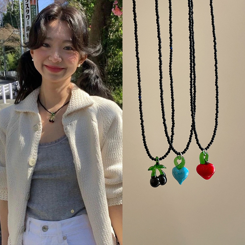 Fever Internet Red Blogger with Colored Glass Cherry Love Necklace Female Niche Personality Fashion Necklace Clavicle Chain